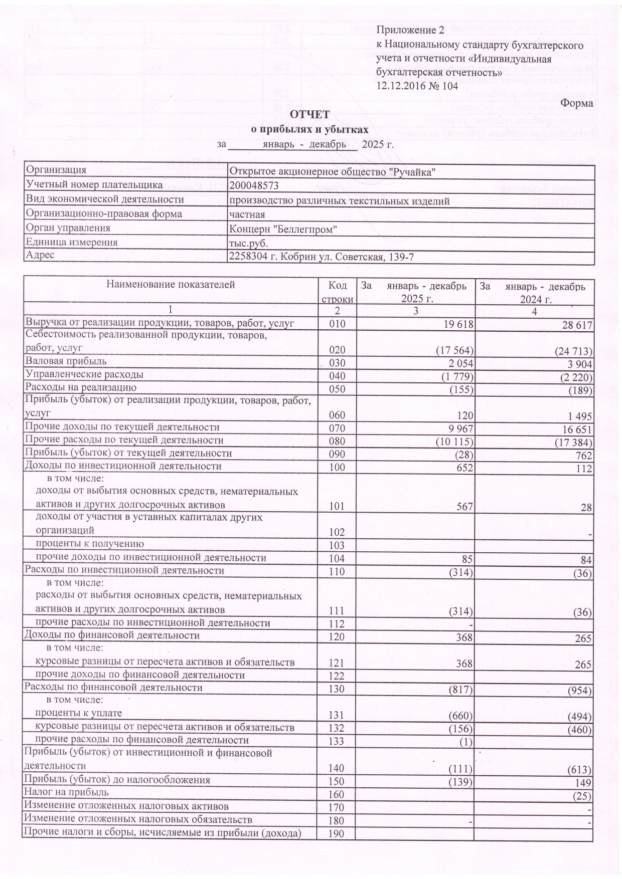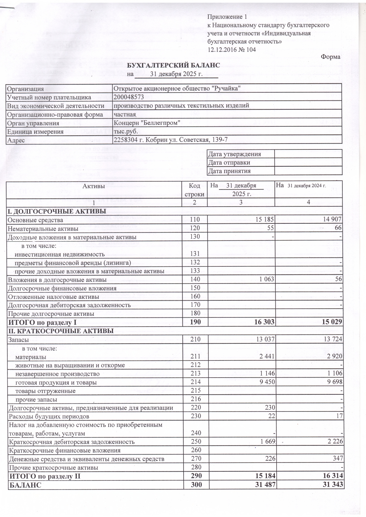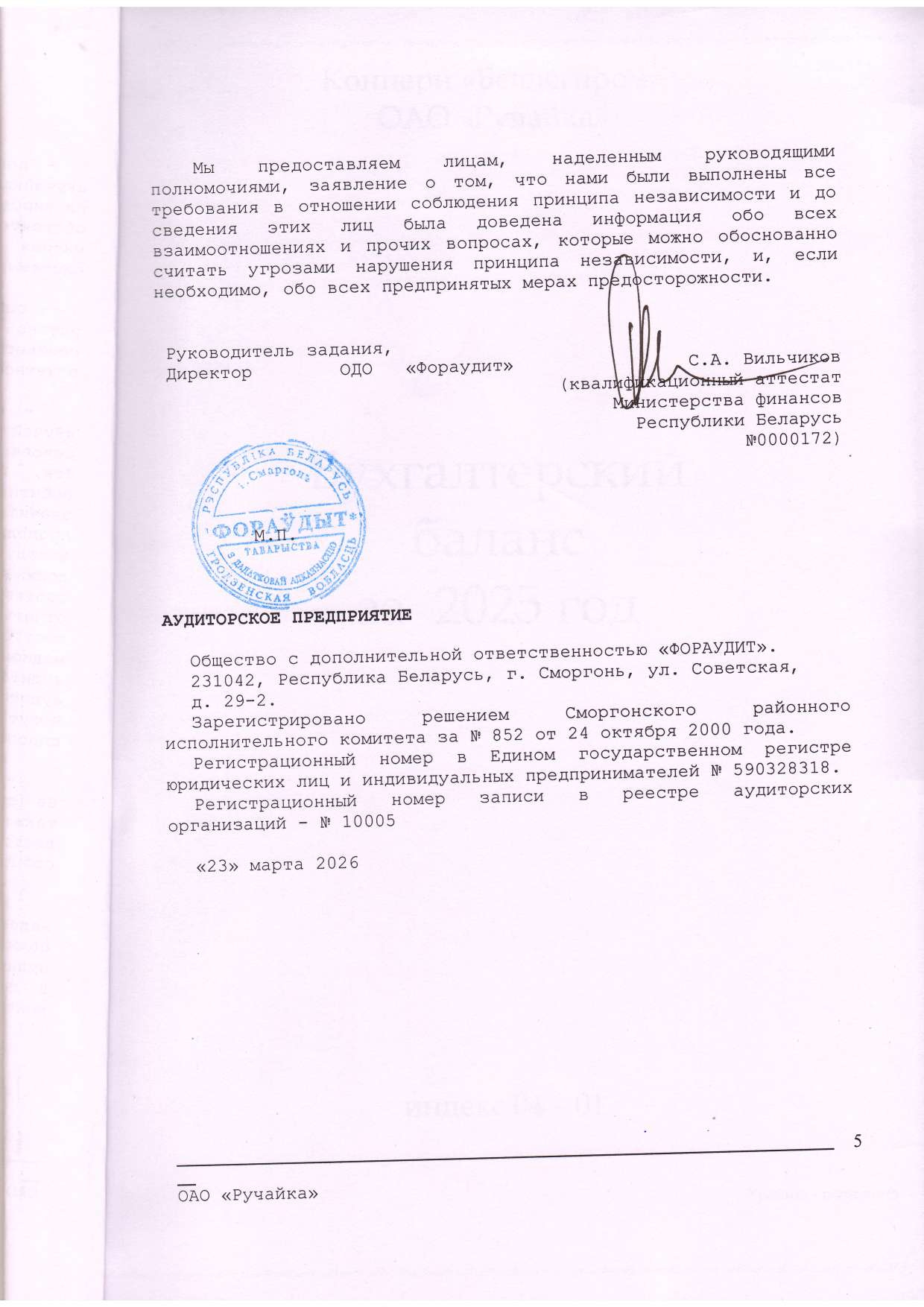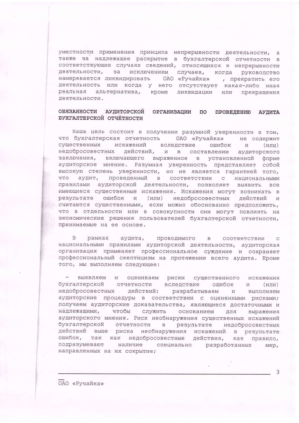 Аудиторское заключение по бухгалтерской отчетности ОАО "Ручайка"
